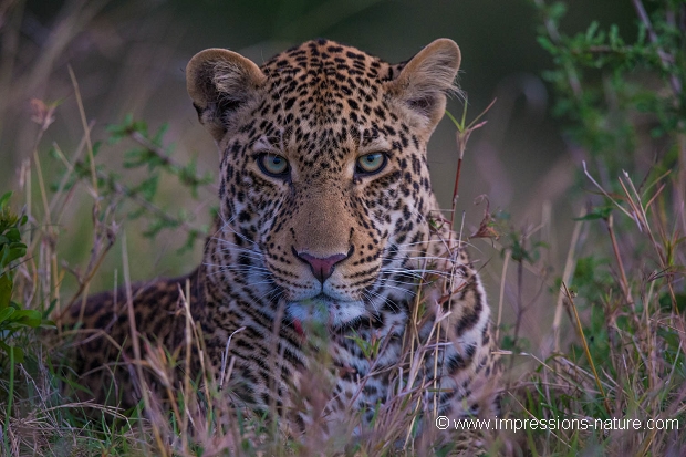 En cette fin de journée ce léopard mâle se reposait avant de partir en chasse.
